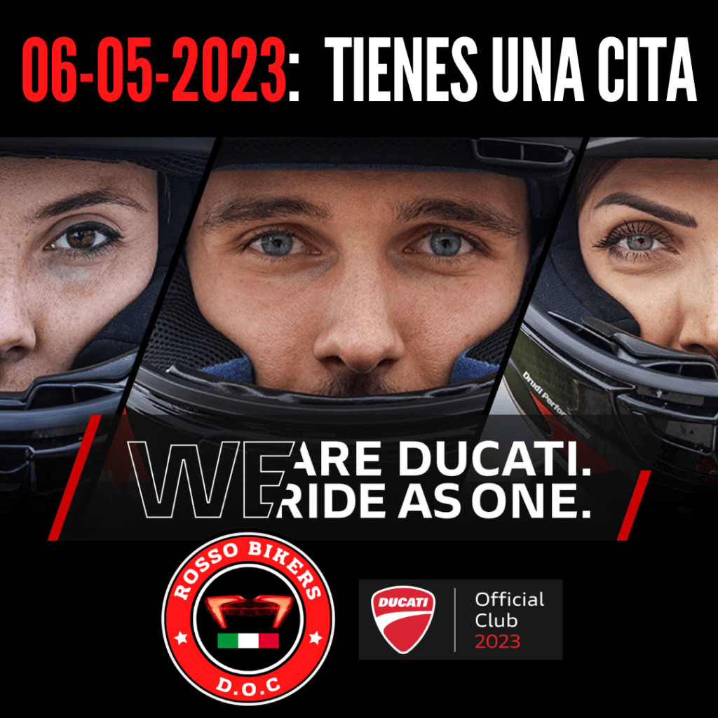 “WE RIDE AS ONE” es un encuentro mundial que reúne a todos los apasionados de Ducati, propuesto por la marca de Borgo Panigale y organizado por los Clubes Oficiales Ducati (DOC) y los concesionarios, para celebrar la pasión por la marca.