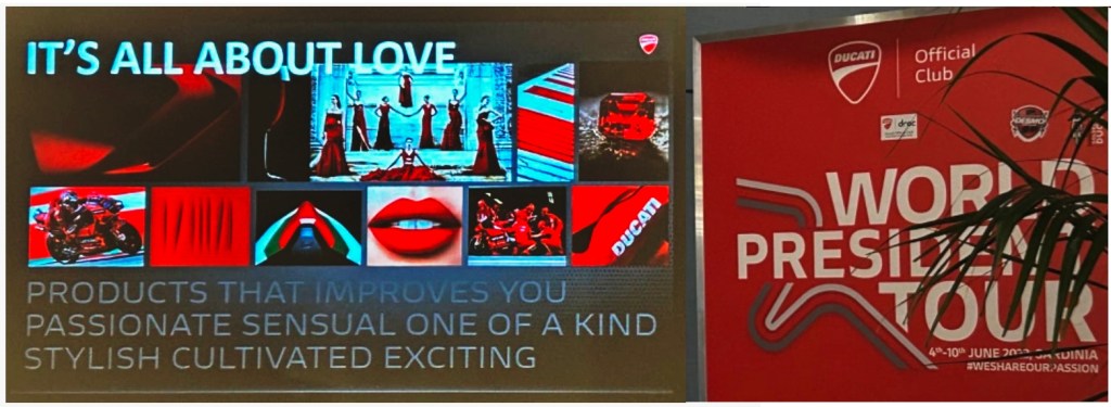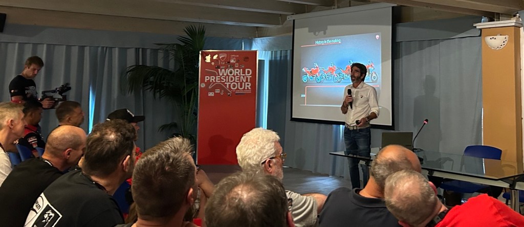 En el World President Meeting 2023, el DOC Rosso Bikers ha podido intercambiar impresiones con presidentas y presidentes de muchos DOCs venidos de muchas partes del mundo. Además de España, este año participaron presidentes de DOCs de Italia, Eslovenia, Alemania, Taiwán, Australia, Israel, Reino Unido, Francia, Bélgica, Nueva Zelanda, EEUU, Líbano, Polonia, Emiratos Árabes, México, India, etc.. siempre, por supuesto, en un entorno completamente ducatista.