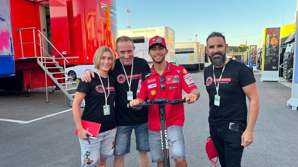 Tras la cena, se hizo un paseo por los exteriores. Pecco se dejó ver un rato, ya que no cenó en el Hospitality, antes de echarse un futbolín con Marco (Bezzecchi).