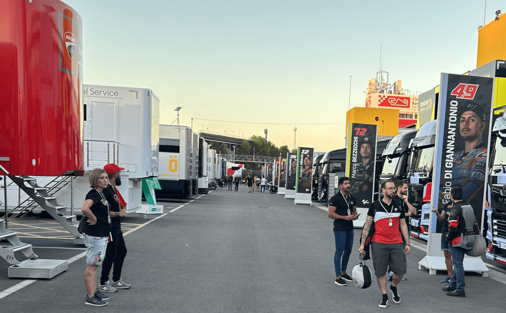 Paseando entre motorhomes, se dejaron ver muchas caras conocidas, como R. Forcada, los hermanos Márquez, P. Acosta, E. Bastianini, y un largo etcétera.