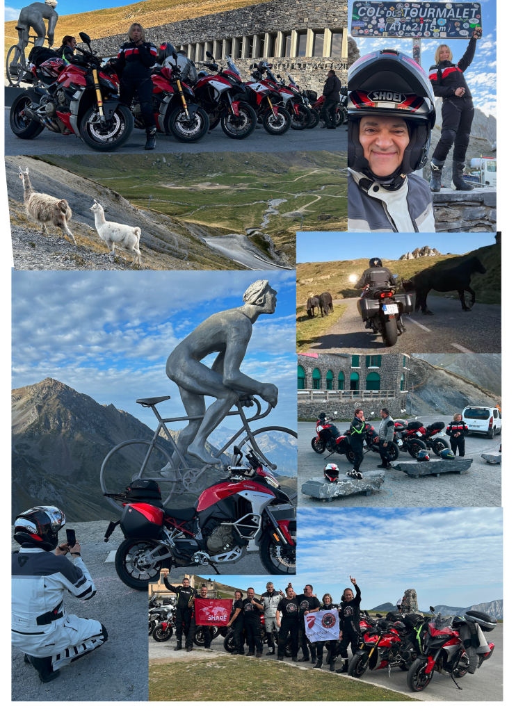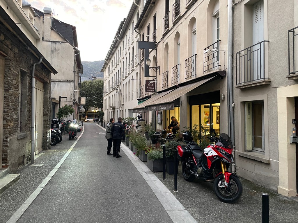 Con la energías cargadas, la ruta siguió hasta las fantásticas curvas del Col de Portillón para hacer noche en la bonita ciudad de Bagnères-de-Luchon. Cena, descanso y, sin tregua, a primera hora de la mañana, el grupo ya estaba en pie de guerra haciendo roncar las Ducatis: