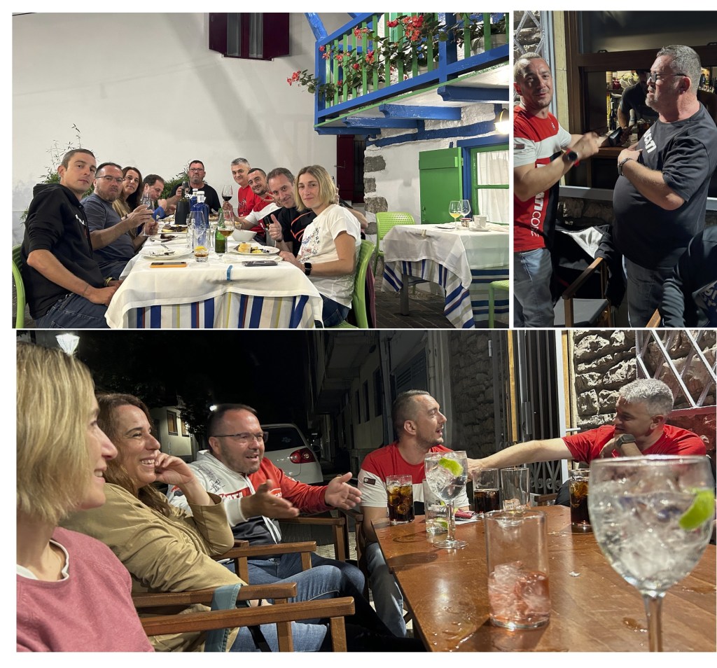 Esta vez, las motos dejaron paso a los taxis para los desplazamientos, bueno, y algo de piernas también :-). El grupo pudo así beber alguna cosa que otra durante y después de la cena.