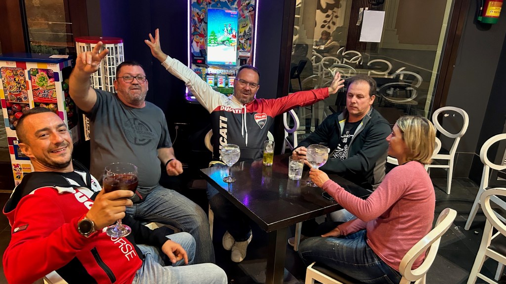 Día 1 >>> 12.10.2023 >>> 436 km. El grupo hacía un café pronto a primera hora de la mañana, en Manresa, antes de comenzar la ruta. Había que cargar bien las pilas!.