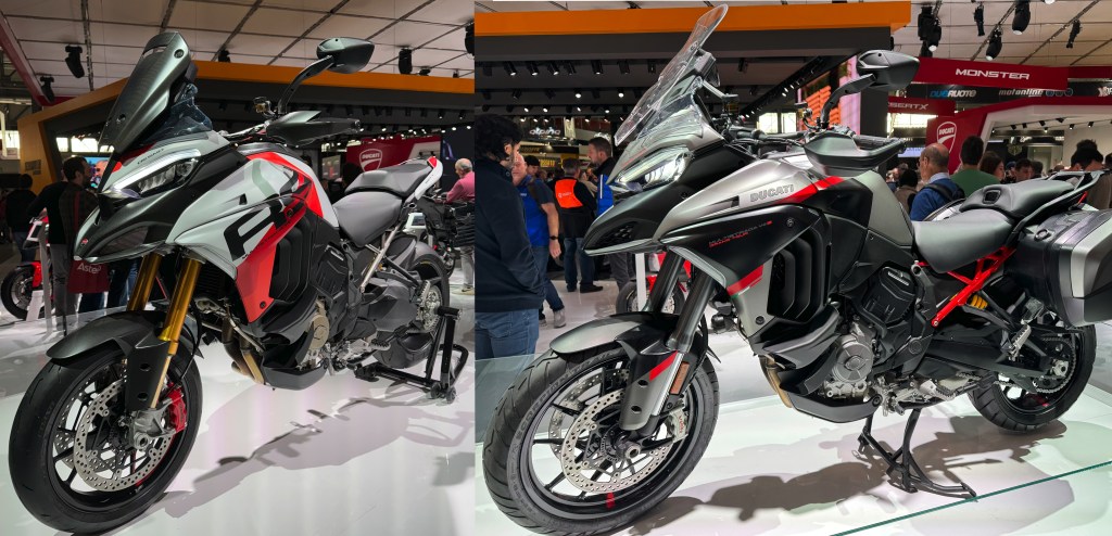 - la familia Multistrada con la deportiva y exclusiva V4 RS, con motor Desmosedici Stradale y embrague seco; y la V4S Grand Tour, destinada al público que devora kilómetros, dotada de un completo equipamiento: