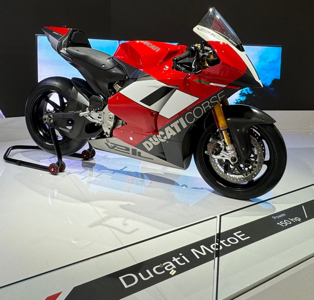 - la eléctrica V21L, que tan excepcionales resultados tuvo en el Campeonato del Mundo FIM de MotoE en esta temporada 2023: