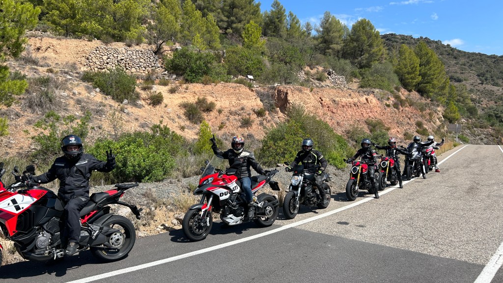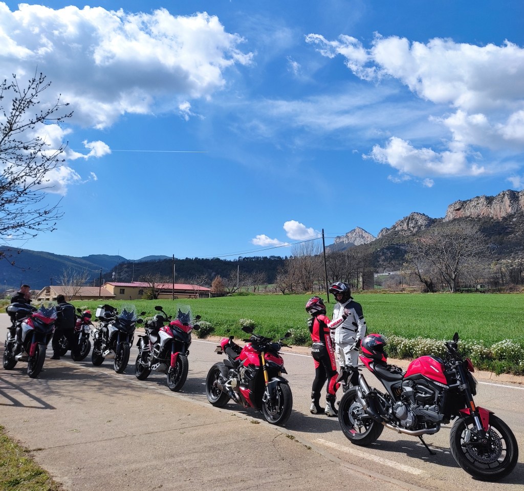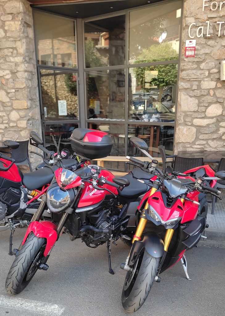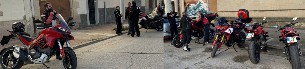12 motos, y 15 Ducatistas nada menos. Socios nuevos y otros que hacía tiempo que nos encontrábamos. En Valls se iniciaba una ruta llena de anécdotas para recordar.