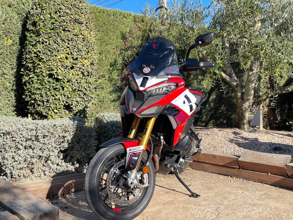 • la familia Multistrada con la deportiva y exclusiva V4 RS, con motor Desmosedici Stradale y embrague seco; y la V4S Grand Tour, destinada al público que devora kilómetros, dotada de un completo equipamiento: