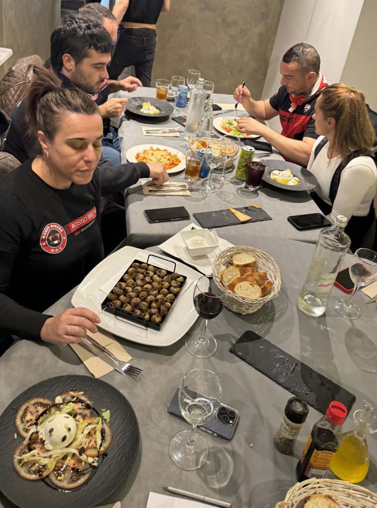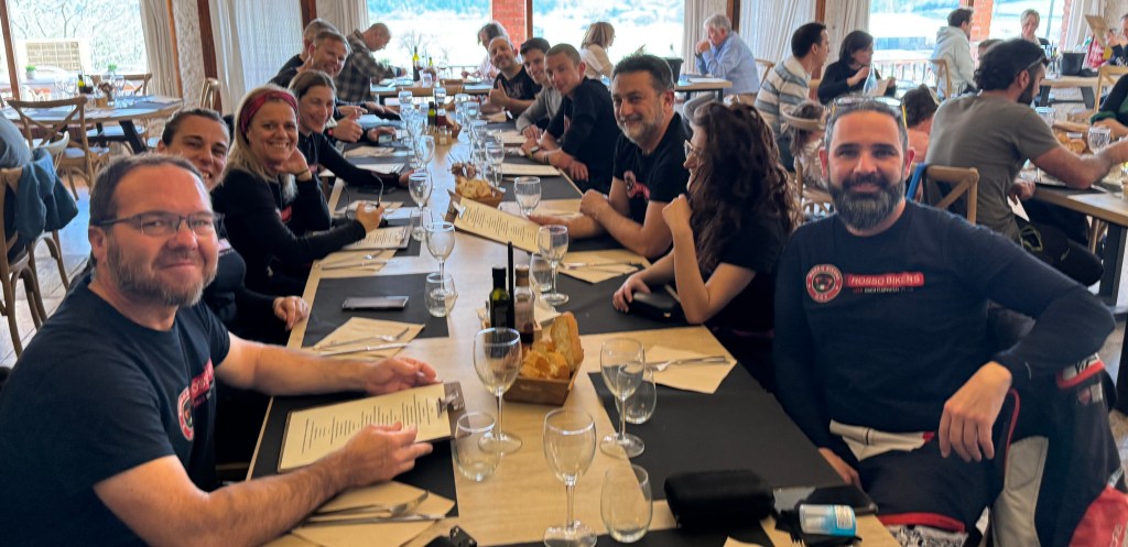 Si la ruta ya fue divertida, no menos fue la comida: un buen rato para relajarse, comer, comentar la jugada, detalles… incluso mirar el reloj 🙂 …
