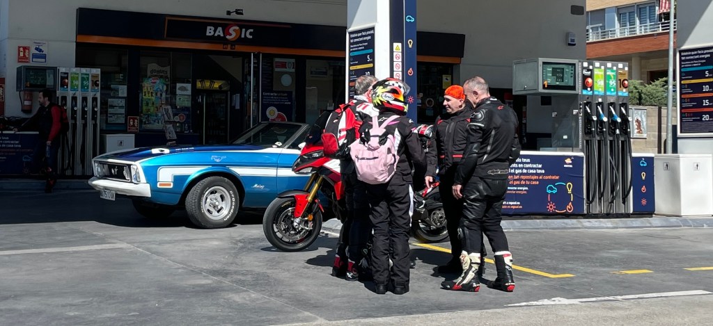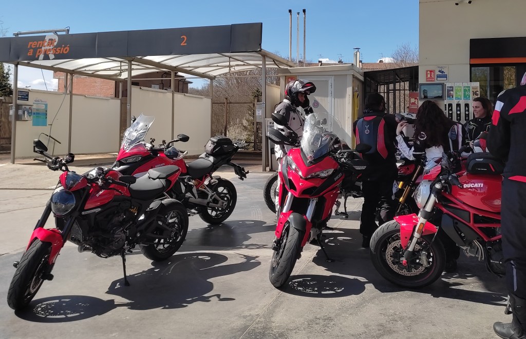 Nada más salir, damos de beber a las Ducatis, para salir de ruta: