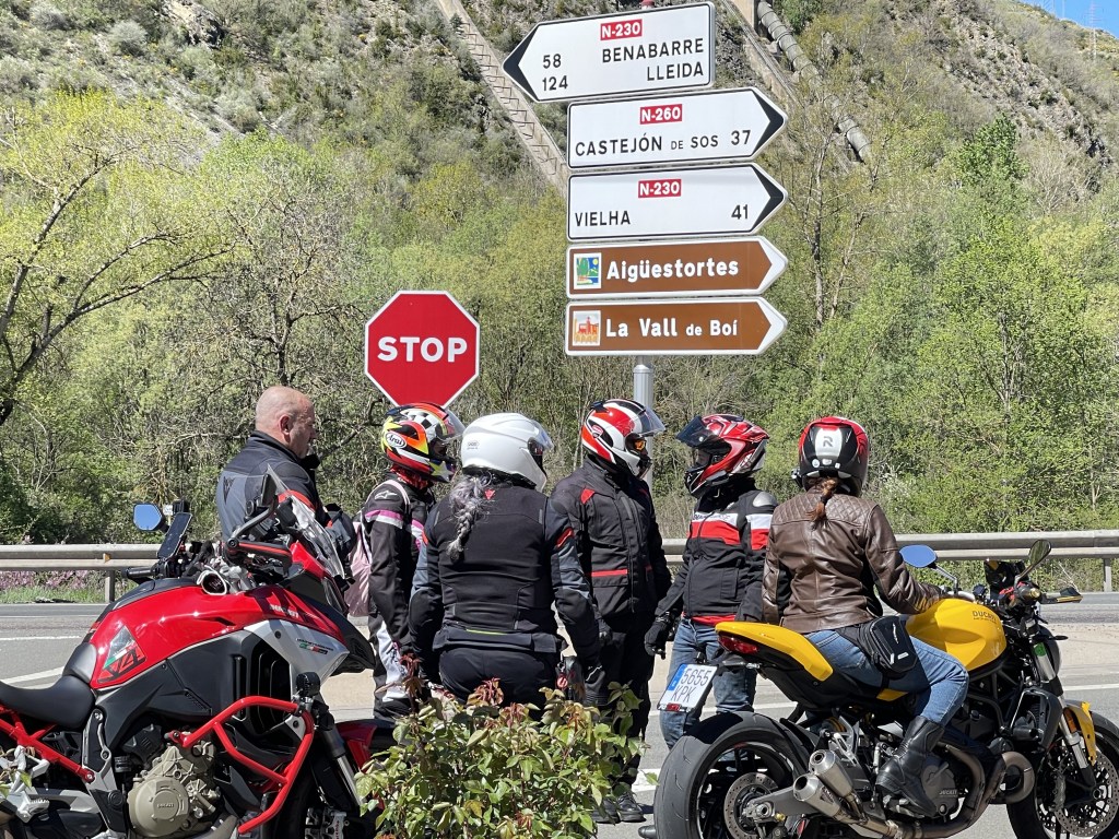 Con la energías cargadas, la ruta siguió hasta las fantásticas curvas del Col de Portillón para hacer noche en la bonita ciudad de Bagnères-de-Luchon. Cena, descanso y, sin tregua, a primera hora de la mañana, el grupo ya estaba en pie de guerra haciendo roncar las Ducatis:
