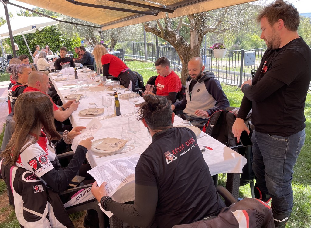 Además de con un clima muy agradable, la ruta terminó con mucha diversión, y también con ganas de compartir mesa. Y así se hizo: directos al párquing exclusivo que el restaurante puso a disposición de los socios para las Ducatis del D.O.C.