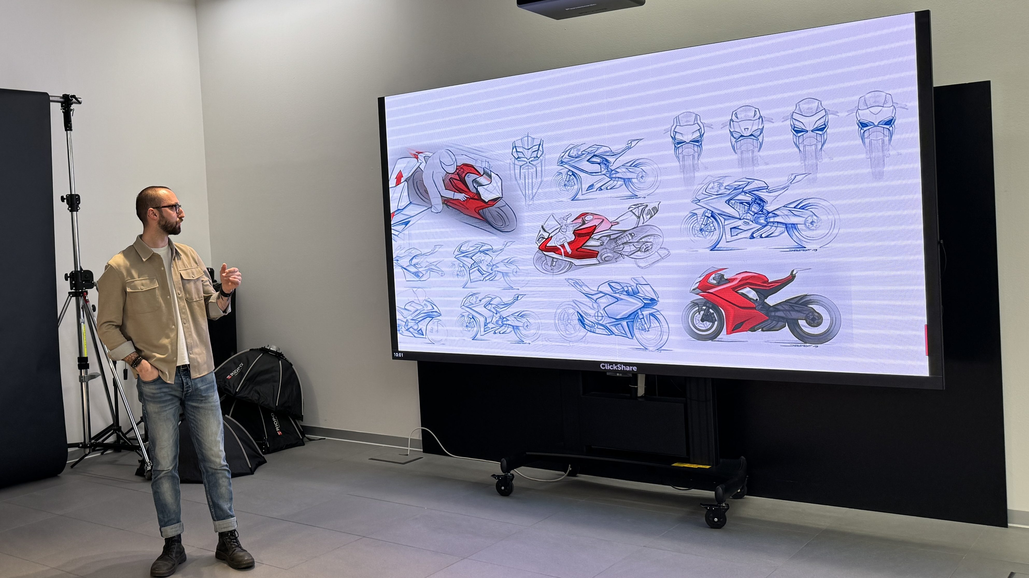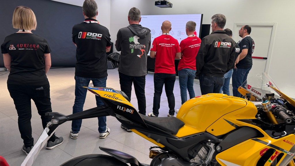 Tras las correspondientes acreditaciones, los D.O.C.s asistentes se dividieron en dos grupos para las actividades programadas. La visita al Centro de Diseño de Ducati estuvo muy interesante. Se explicó todo el proceso, desde la idea inicial hasta la moto puesta en la calle.