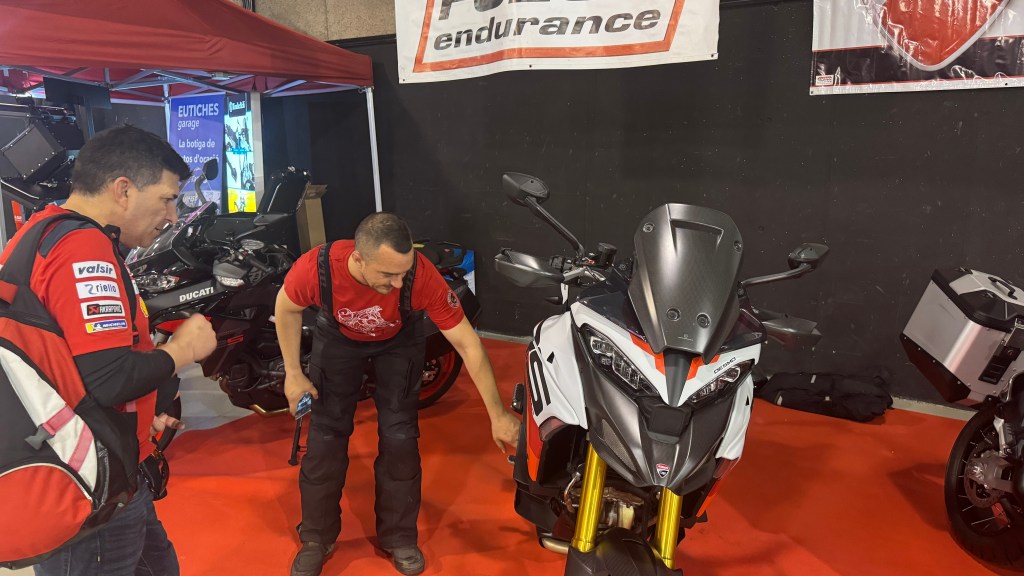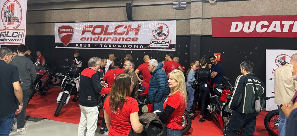 12:15h: ya en el interior de la feria, este año se notó más movimiento respecto al año pasado. Había más gente y también más motos expuestas. El stand de Ducati de Folch Endurance, el más visitado.